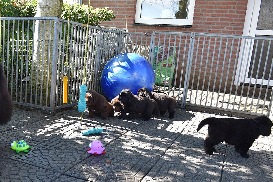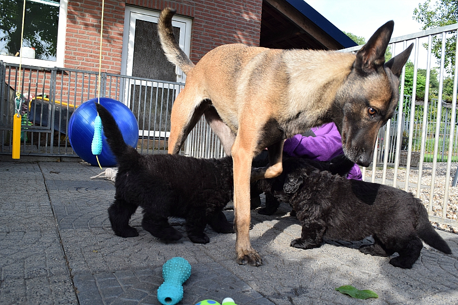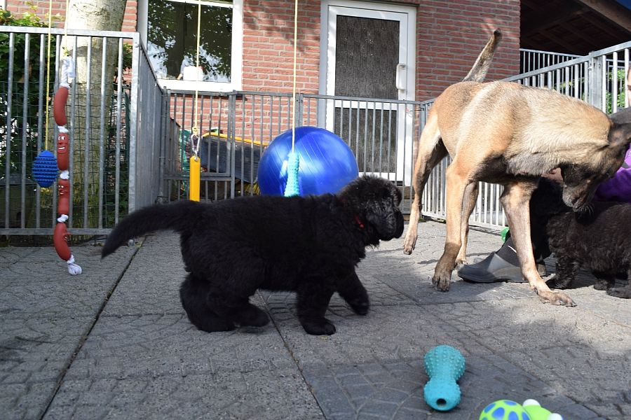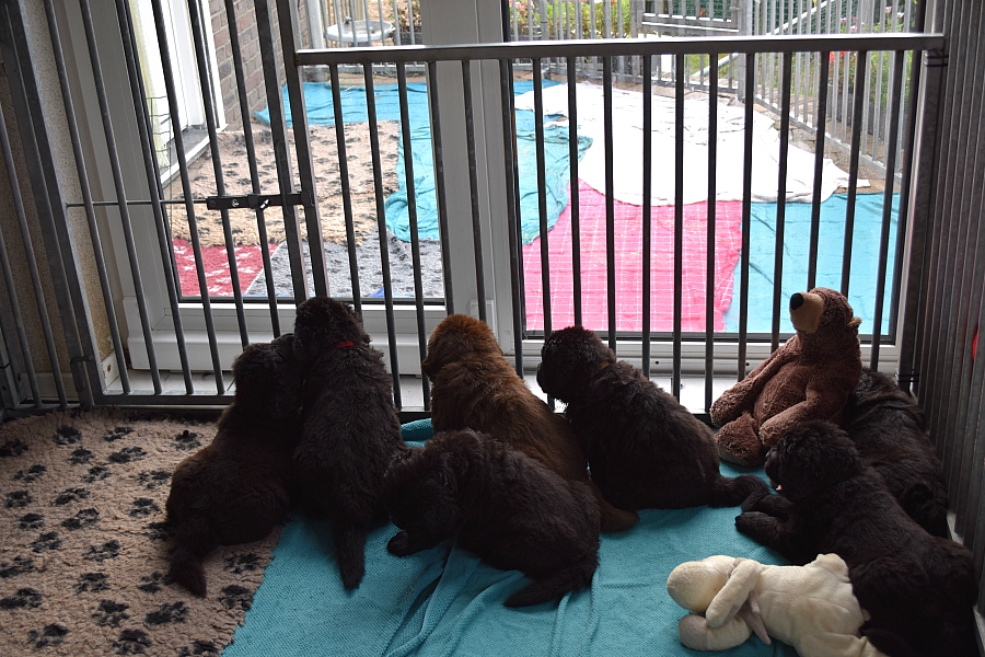 pups naar buiten. En terwijl er op de achtergrond heel veel
